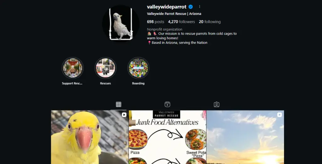 Our Mission at Valleywide Parrot Rescue is to take in Parrots that are lost, losing their home, being neglected, or being abused. We rehabilitate them and then find them a new, loving, and caring Home!